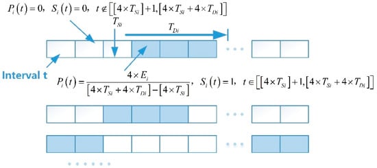 According to , and , a total of 96 time periods in 24 h are taken at equal intervals. Each charging record is converted into a discrete power value in each time interval, as shown in Figure 2: