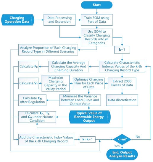 The load characteristic analysis process is shown in Figure 3. The SOM is trained by a random part of the charging records and is used to cluster all the records, then the proportion of each type of charging record in different scenarios (service type, weather condition and day type) is analyzed.