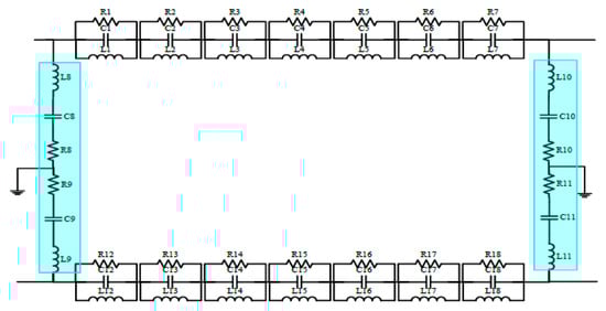 In order to suppress the interference on the HVDC cable, a π-type filter is added at the port. The complete π-type filter circuit model considering the high-frequency parasitic effect is shown in Figure 3.