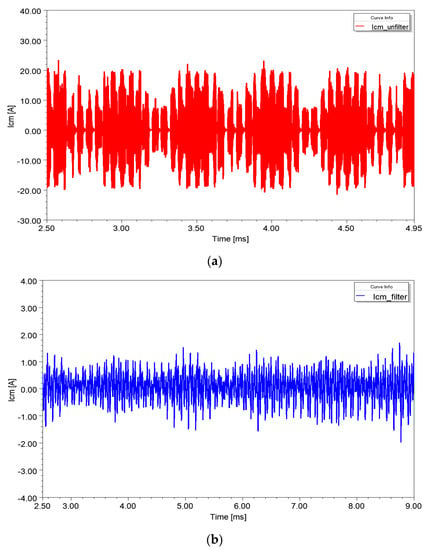 The common mode current: (a) without filtering; (b) with filtering circuit.