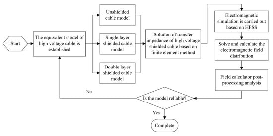 As the power source of electric vehicles, the electromagnetic emission of the electric drive system is a great challenge to the EMC (electromagnetic compatibility, EMC) of electric vehicles. With the development of technology, the electric drive system gradually tends to be integrated and miniaturized, and more compact functional integration in limited space will undoubtedly make the problem of electromagnetic interference more serious. Therefore, aiming at the latest multi-in-one electric drive system composed of a motor controller, permanent magnet synchronous motor, reducer, and charger, the electric drive system used in electric vehicles has been considered as a noise source of both conducted and radiated electromagnetic interference due to its high du/dt (rate of change of voltage per unit time, du/dt) and di/dt (rate of current change per unit time, di/dt) of switching characteristics. The radiation of electric drive systems has been researched by many experts. The hybrid simulation technology of the moment method and transmission line method is used to analyze the impedance and radiation EMI (electromagnetic interference, EMI) of the cable of the electric drive system [1,2,3]. Aiming at the EMC problem of the motor drive system and its interference mechanism, an electromagnetic model construction simulation method for the study of the electromagnetic radiation intensity distribution in electric vehicles was also proposed [4,5]. Theoretical calculation and measurement of shielded cable transfer impedance for evaluation of cable shielding effectiveness is proposed by E.F.Vance, and theoretical models of tubular, braided, helically wound, and multi-layer shielded cables is introduced in detail [6]. Since then, many foreign experts and scholars, such as Tyni [7], Kley [8], Demoulin [9], S.Sali [10], etc., have improved the theoretical calculation model of transfer impedance of the Vance shielded cable. These theoretical derivations mainly focus on braided shielded cables. The contribution of the flux connection between braided layers to the transfer impedance is further studied, and the theoretical calculation of the transfer impedance is gradually improved.