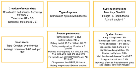 Simulation inputs for PVsyst 7.2 [28,29,30].