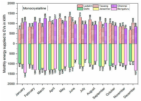 Monthly variation in energy supplied to EVs by the charging station using monocrystalline modules.