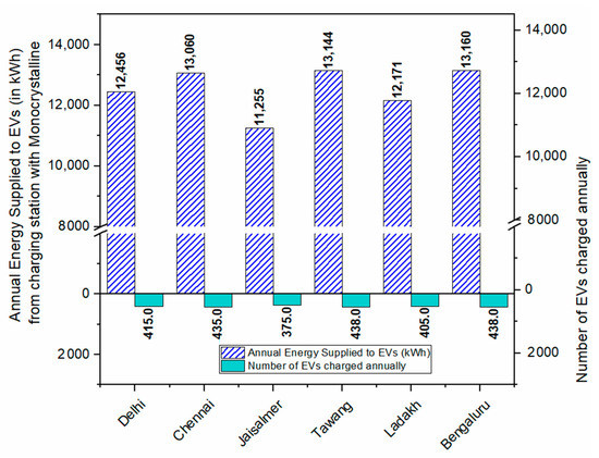 Annual energy supplied to EVs by the charging station using monocrystalline panels.