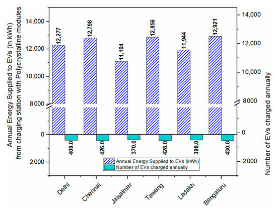 Annual energy supplied to EVs by the charging station using polycrystalline panels.