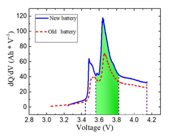 - As the lithium-ion battery ages, the DV curve moves upward, the distance between the curves expands, and the main peak area of the IC curve decreases. When accelerating aging of the battery occurs, the capacity decay rate increases, and an obvious inflection point appears, and the corresponding characteristic parameters also change significantly. The bottom of the DV curve and the distance between the DV curve are significantly increased, while the main peak of the IC curve is rapidly reduced.