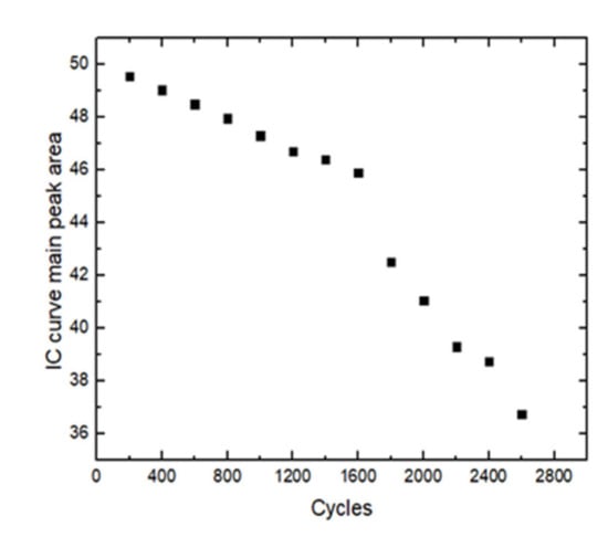 The capacity increment curve (IC curve) is obtained by deriving the capacity-OCV curve of the battery, and the change of each peak reflects the different stages of the battery in the electrochemical reaction process. Among them, the area of the main peak of the IC curve has a certain correlation with the capacity of the lithium-ion battery. When a lithium-ion battery undergoes accelerated aging, the area of the main peak of its IC curve is usually significantly reduced. This feature can be used as a basis for judging the inflection point of the accelerated aging of the lithium-ion battery. As shown in Figure 2: