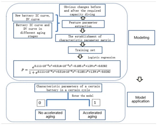 This paper uses the logistic regression method to realize the judgment of the accelerated aging fault of the lithium battery. This method can solve the situation that the complete charging curve of the battery cannot be obtained in practice to a certain extent, focusing on the extraction of the charging curve only in the 15–75% SOC range. It aims to characterize the characteristic parameters of accelerating battery aging, establish the relevant characteristic parameter matrix, and use it as the training set of the logistic regression method. The logistic regression method is used to train the accelerated aging model of the lithium-ion battery, and then the characteristic parameters of the lithium battery to be tested in the current state are input into the established model to realize the diagnosis of the accelerated aging fault of the lithium-ion battery. The specific process is as follows: