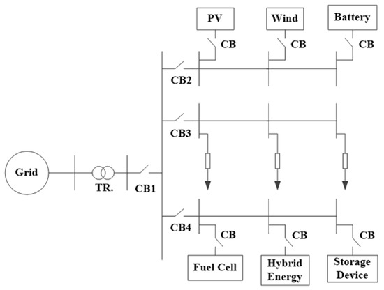 Selectivity and sensitivity functions should be considered when designing a suitable protection scheme for a system capable of operating in different modes. The selectivity term is measured by the system’s ability to define the fault location and identify the fault zone, whether internal or external. For a system that may operate under several modes of operations, the suggested protection strategy should identify the fault conditions. The system should switch to operating in an islanded mode for any grid faults and protect the different equipment in the system. During the stand-alone operation of the system, the protection scheme is responsible for isolating the faulted section and keeping the system operating under stable conditions. Sensitivity means that the protective devices should detect the fault conditions in the system. The protection scheme’s main objective is to detect the fault and remove it from the system as fast as possible to reduce the damage to the equipment by opening the appropriate circuit breakers. Adjusting the sensitivity of the protection devices should be achieved without negatively impacting the selectivity of the protection scheme [15].
