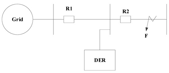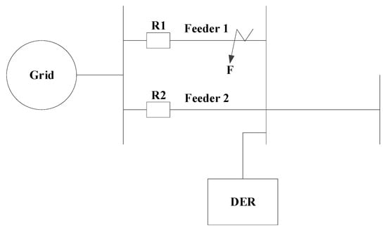 Due to the high penetration of DGs, the possibility of tripping a healthy feeder is high when the fault happens at the adjacent fault. Figure 2 shows a simple case where the fault occurs on feeder 1. For a fault on feeder 1, the relay R1 should trip first, but due to the high contribution from DG to R2 during the fault, it can trip before R1, causing a miss operation and isolating the healthy feeder 2. A communication link can be used to coordinate between relays R1 and R2, allowing relay R1 to operate before relay R2 [18].