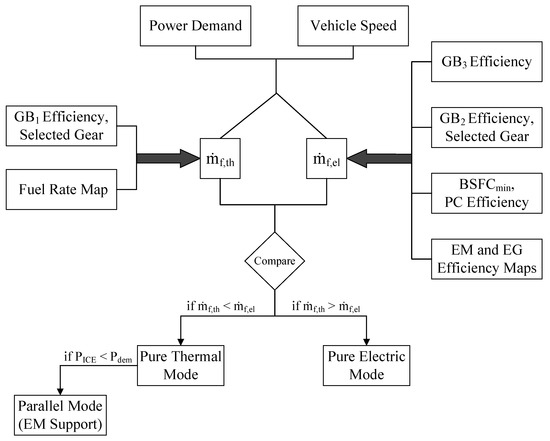 - De Bellis, V.; Malfi, E.; Zaccardi, J.M. Development of an Efficient Thermal Electric Skipping Strategy for the Management of a Series/Parallel Hybrid Powertrain. Energies 2021, 14, 889. [Google Scholar] [CrossRef]