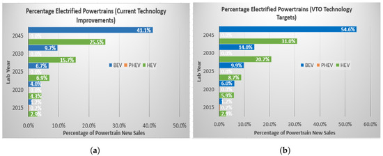 - The market penetration of electrified vehicles is assumed to increase by 62% by laboratory year 2045 for low technology progress and by 81% for high technology progress;