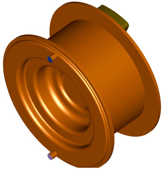 Various studies have been conducted on the thermal performance of the oil-spraying cooling. Ye et al. [9] reformed a motor cooled only by water into one cooled by both water and oil. The cooling oil was injected directly to the end winding through the nozzle which is fixed in the end cover. The temperature rise of the motor was obviously decreased by 40–50%. Tanguy [10] experimentally investigated factors on thermal performance of the oil-spraying cooling motor, including different injector nozzles and the oil flow rate, etc. In order to improve the heat transfer, the dripping injector and a higher flow rate were recommended. The cooling effect of these studies is satisfactory and can greatly reduce the temperature rise of the motor, with nearly no oil friction loss due to rotor rotation. However, there is a disadvantage in the oil-spraying cooling hub motor. Water cooling is used when the matching inverter power is large. Thus, the electric drive system requires two independent cooling systems. The water-cooling system needs water pipes, water pumps, heat exchangers, etc. The oil cooling system also requires oil pipes, oil pumps, oil cooler, etc. This entails increasing parts cost and installation space. In addition, the oil-spraying cooling approach exhibits another drawback of heat dissipation with the existence of some dead zones, such as winding coils in the slots, magnets, where the cooling oil cannot be touched.