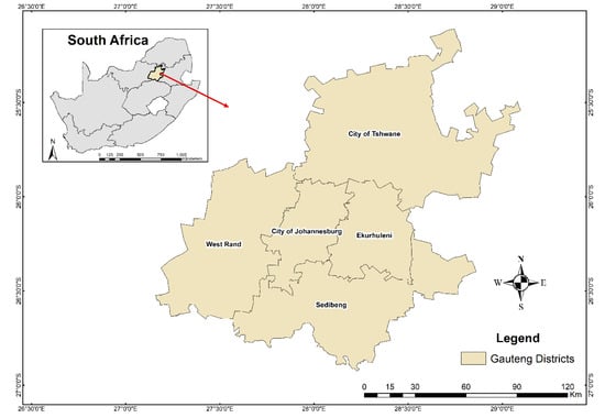 - Lehohla, P. Census 2011: Provincial Profile: Gauteng; Statistics South Africa: Pretoria, South Africa, 2014. Available online: http://www.statssa.gov.za/publications/Report-03-01-76/Report-03-01-762011.pdf (accessed on 23 November 2018).