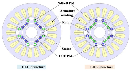 Table 1. It should be noted that the two structures share the same stator, HCF and LCF magnet usage, overall dimensions, as well as electric loading in order to ensure the fairness of the comparison.