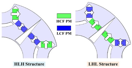 The electromagnetic characteristics of the proposed PHMMM with HLH and LHL structures are compared in this Section. The design parameters of the two structures are listed in