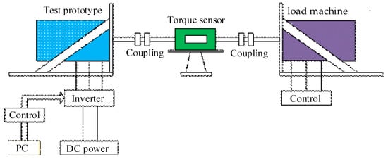 Figure 20 is a schematic diagram of the test platform. The test platform basically includes an adjustable DC power supply, inverter, PC, test prototype, coupling, load machine, and controller. The adjustable DC power supply injects a three-phase current into the inverter to drive the PHMMM for motoring operation. In addition, the PC terminal can use the controller to apply instantaneous