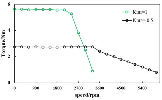Kmr = −0.5. The torque-speed curves obtained are shown in