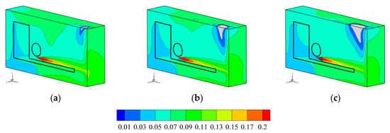 In the closed space, the vent has a non-negligible influence on the concentration distribution during the hydrogen leakage, so the influence of different vent areas on the hydrogen leakage and diffusion is analyzed. In Figure 16, the vents of the upper wall, as S1, S2, S3.