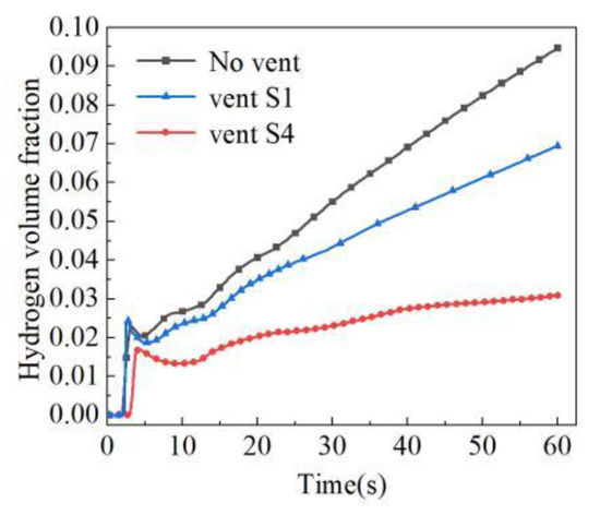 Such as Figure 20 set vent S4, the set equal area vent behind the wall in space S1 analyzes the effect of vent position on hydrogen concentration in closed space.