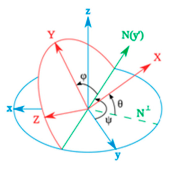 Definition , , are the rotation angles around the Z-axis, Y-axis, and X-axis, respectively, or yaw, pitch, and roll if expressed in terms of Tait–Bryan angles [20]. Tait-Bryan angles are shown in Figure 2.