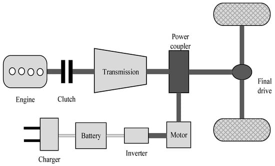 The energy management strategy introduced in this paper takes a PHEV as the research object, and its powertrain structure is shown in Figure 1.