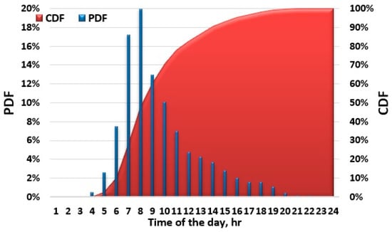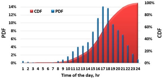 1] used the US National Household Travel Survey (NHTS) to build a load profile for EVs. This model is based on different data, such as time of arrival, daily driven distance, battery capacity, rate of EV charging, and the total estimated number of EVs. Grahn developed different EV load profiles based on driver’s behavior and EV charging needs [
