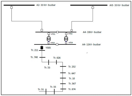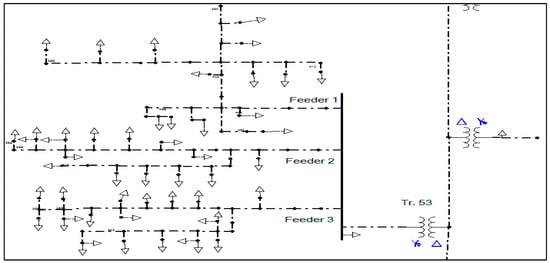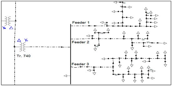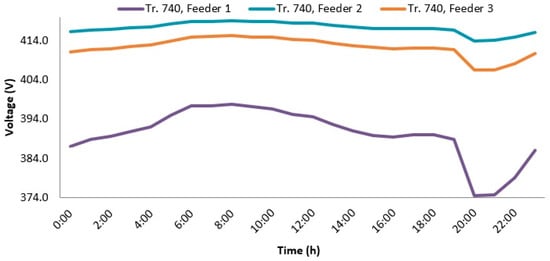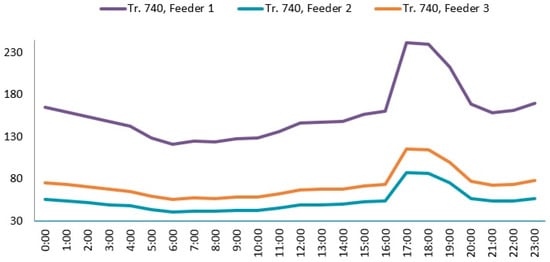 | Transformer | Feeder | Cross Section (mm2) | CCC (A) | Summer Load (kW) | Summer Voltage Drop (%) | Winter Load (kW) | Winter Voltage Drop (%) |