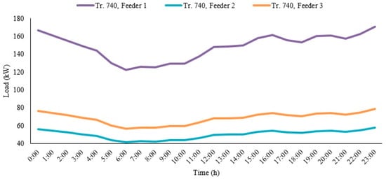 Load profiles of Transformer 740 in summer with 0% EVC.
