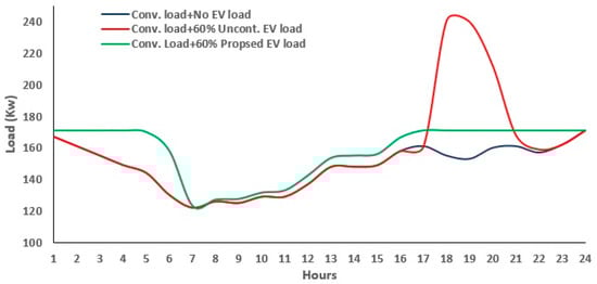 The previous steps are performed to simulate the EV load under an arrival time (the time of arriving home, which differs from one person to another) charging scenario.