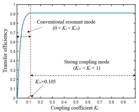 According to Figure 6, when k1 < 0.105, the system is in the conventional resonant mode, and the system efficiency changes with the value of k1. After the coupling coefficient reaches 0.105, the system can maintain stable operation efficiency, which is only related to the inherent parameters.