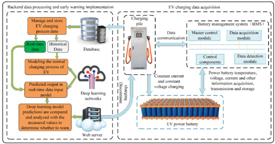 Under the dual pressure of the energy crisis and environmental degradation, EVs, as the main development direction of new energy vehicles, have attracted increasing attention [1,2]. With the continuous development of the EV industry, the safety and reliability of charging has become the focus of attention. Various types of power batteries are the power source of EVs. Once the power battery fails in the process of charging, it is likely to lead to a fire accident, thus causing serious economic losses. Therefore, in the process of charging an EV, it is especially important to be able to effectively predict the occurrence of power battery failures, provide early warning before they occur, and take measures to deal with them.