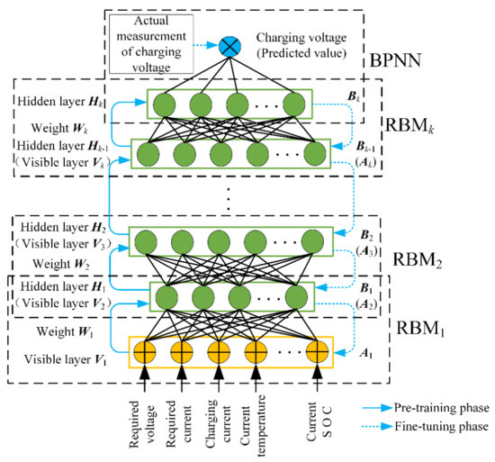 Structure and training diagram of deep belief network (DBN) model for normal charging voltage.