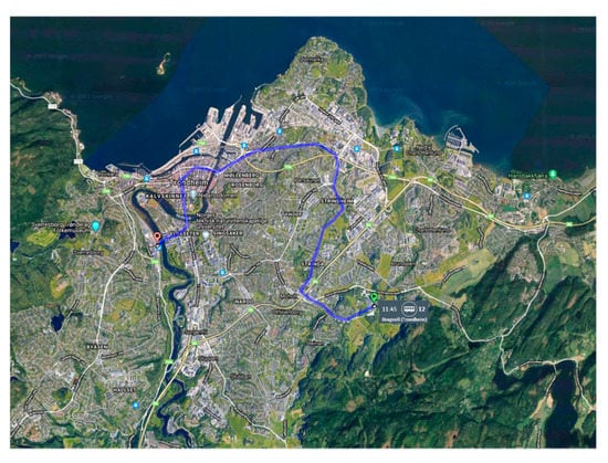 During the demo period in Osnabrück, there was an issue with the CAN connection of the built-in data logger of the Heuliez EB; therefore, no data from the bus were obtained. As a replacement, Heuliez provides data from the city of Trondheim in Norway, see Figure 4, with the same vehicle configuration as the demo bus in Osnabrück. The total mileage of the vehicle is 115.850 km.