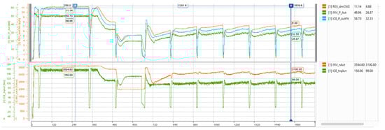 While REx was being build and put into operation in the MAN E-Truck, the tests and measurements were done. Graphs of the engine torque and speed, Compressed Natural Gas (CNG) mass flow, and produced electric power of the REx module running on a test bench are shown in Figure 6.