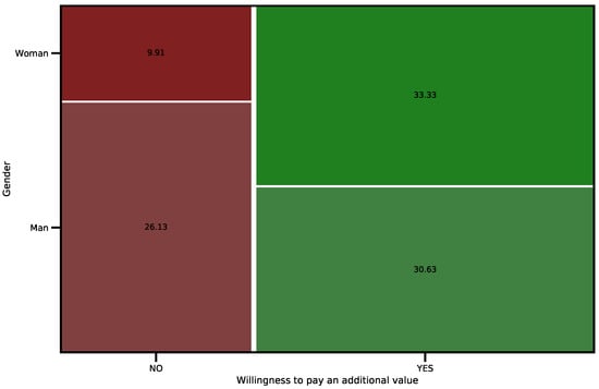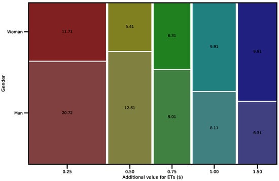 Mosaic plot of the willingness to pay an additional value for ETs based on gender.