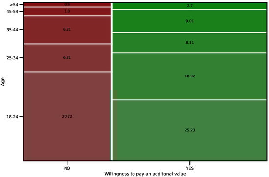 Mosaic plot of the willingness to pay an additional value for ETs based on age.