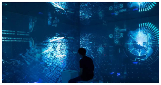 With the maturity of interaction technology in the past two years, more and more interactive media have been applied to the big data visualization interface, such as somatosensory interaction, AR interaction, eye movement, and EEG (Electro- EncephaloGram) interaction, in an attempt to return users to a “natural” human–computer interaction mode. Somatosensory interaction is an interactive way to directly interact with the surrounding devices or environment by means of body action, sound, eye rotation, and so on. Figure 1 shows the large art installation of fully immersive glass house at the 2018 China smart Expo, which shows you the new concept of smart city and the digital display, interaction and experience of Smart Life visualization through three-dimensional digital content and multimedia digital technology [17].
