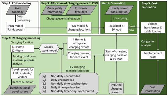 - Neaimeh, M.; Wardle, R.; Jenkins, A.M.; Yi, J.; Hill, G.; Lyons, P.F.; Hübner, Y.; Blythe, P.T.; Taylor, P.C. A probabilistic approach to combining smart meter and electric vehicle charging data to investigate distribution network impacts. Appl. Energy 2015, 157, 688–698. [Google Scholar] [CrossRef]