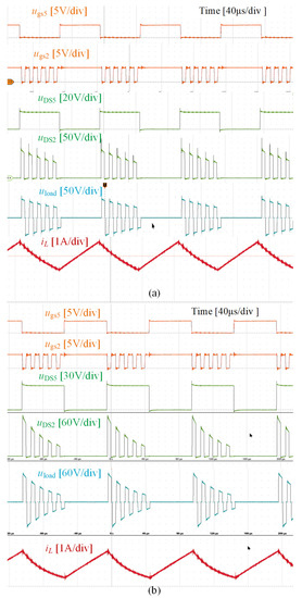 Figure 12 shows the waveforms when the MOSFETs were turning on and off. Combining (30), the power loss of the turn-on and -off stages, respectively, can be calculated as: