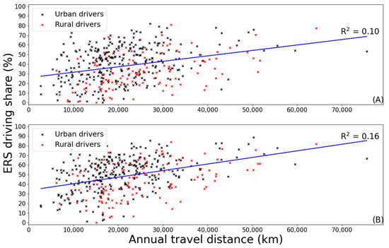 3.2. ERS Utilization Is Not Very Dependent on Annual Travel Distance but Urban/Rural Residence