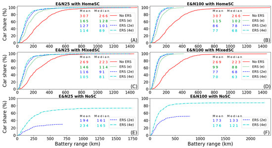| Stationary Charging Pattern | ERS | Median Battery Range (km) | ||