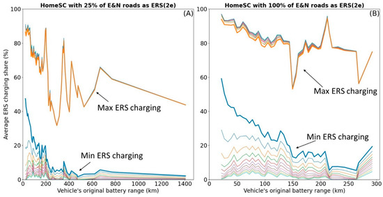 3.3. Combining ERS with Stationary Charging Significantly Reduces the Required Battery Range