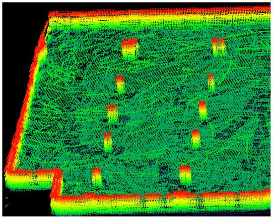 After distinguishing the dynamic objects and the static parts, we remove the dynamic point cloud. The resultant static point cloud map of the environment we obtained is shown in Figure 15. In addition, because our algorithm performs regional ground plane fitting on the corresponding region of dynamic points suppression to compensate for the mistakenly deleted ground points, we can see that there are no vacant holes in the static map.