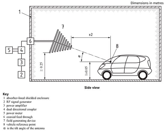 - ISO Standard 11451-2; 4th ed. Road Vehicles—Vehicles Test Methods for Electrical Disturbances from Narrowband Radiated Electromagnetic—Part 2: Off-vehicle Radiation Sources. ISO: Geneva, Switzerland, 2015.