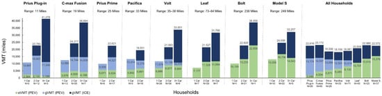 Total annual household VMT among the households were similar, as seen in Figure 2, ranging from 18,156 miles for Pacifica households, to 23,172 miles for C-max Fusion households.