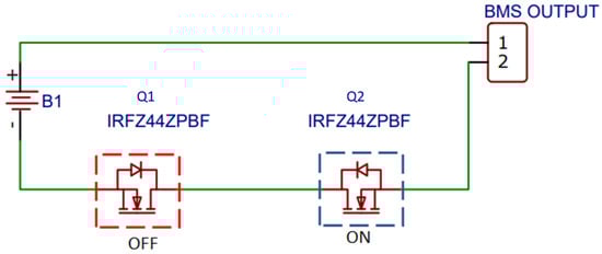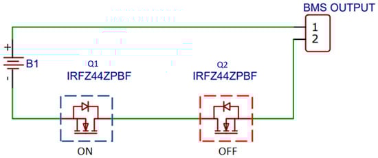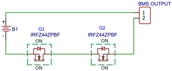 In the ideal condition, charging and discharging of the battery is possible. Q1 and Q2 are on. Diodes D1 and D2 are on, as shown in Figure 8.