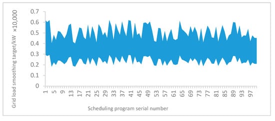 By reducing the fluctuation of the load curve of the virtual power plant interacting with the grid power [], the objective function of grid load smoothing becomes: