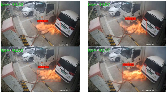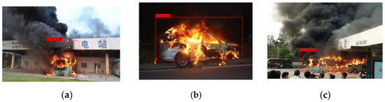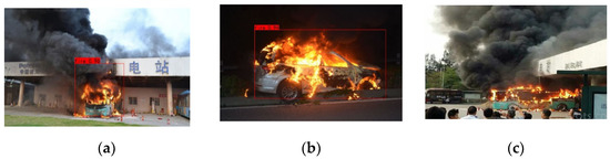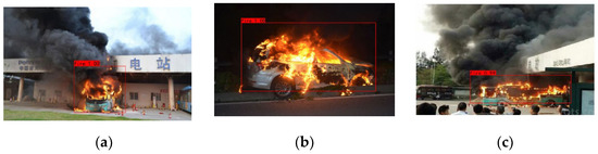 - For the problem of the low recognition rate of small-target object detection in the YOLO series algorithm, the proportion of small-size flame images in the flame dataset was increased to improve the sensitivity density of small-flame detection at the early stage of fire.