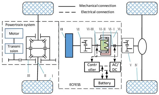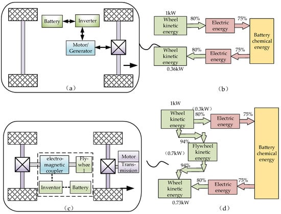 - Most of the energy between the wheels and the flywheel is transmitted in the form of mechanical energy during the vehicle deceleration and cruising in the proposed system, and the power transmitted by the mechanical port of the electromagnetic coupler is not limited by the rated power.